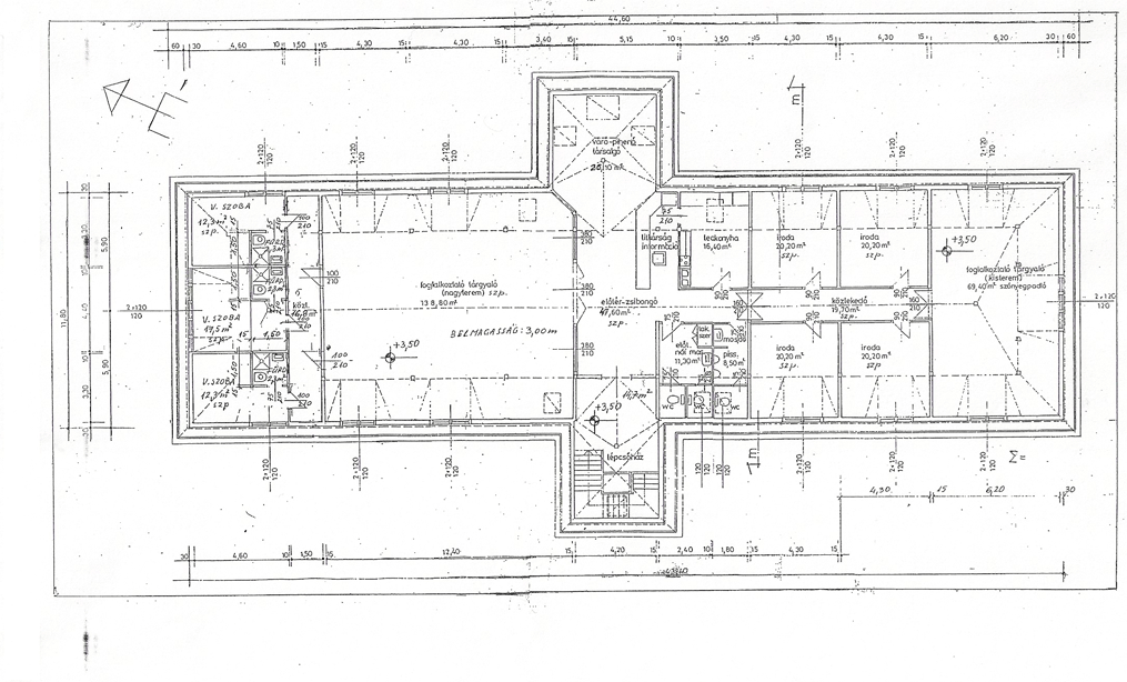 Az épület beépített területe: 500 ㎡ Többszintes épület: földszint, és tetőtér beépítéssel épült.